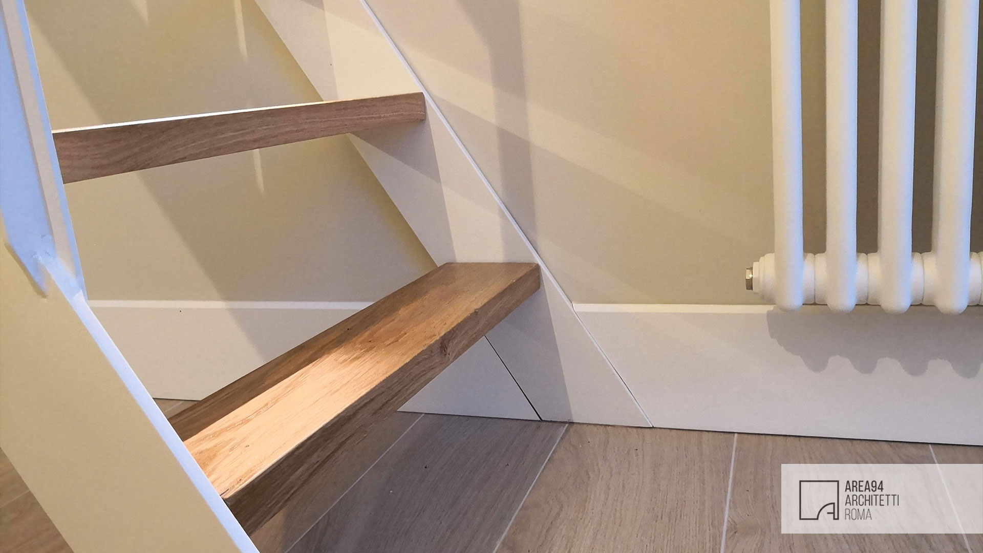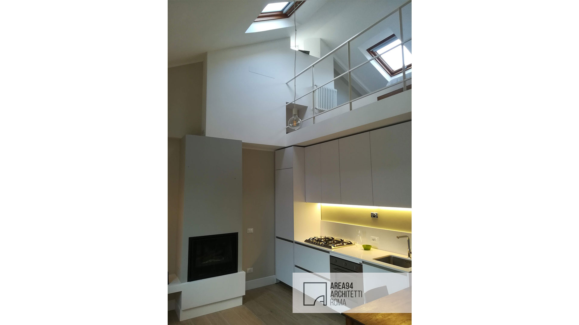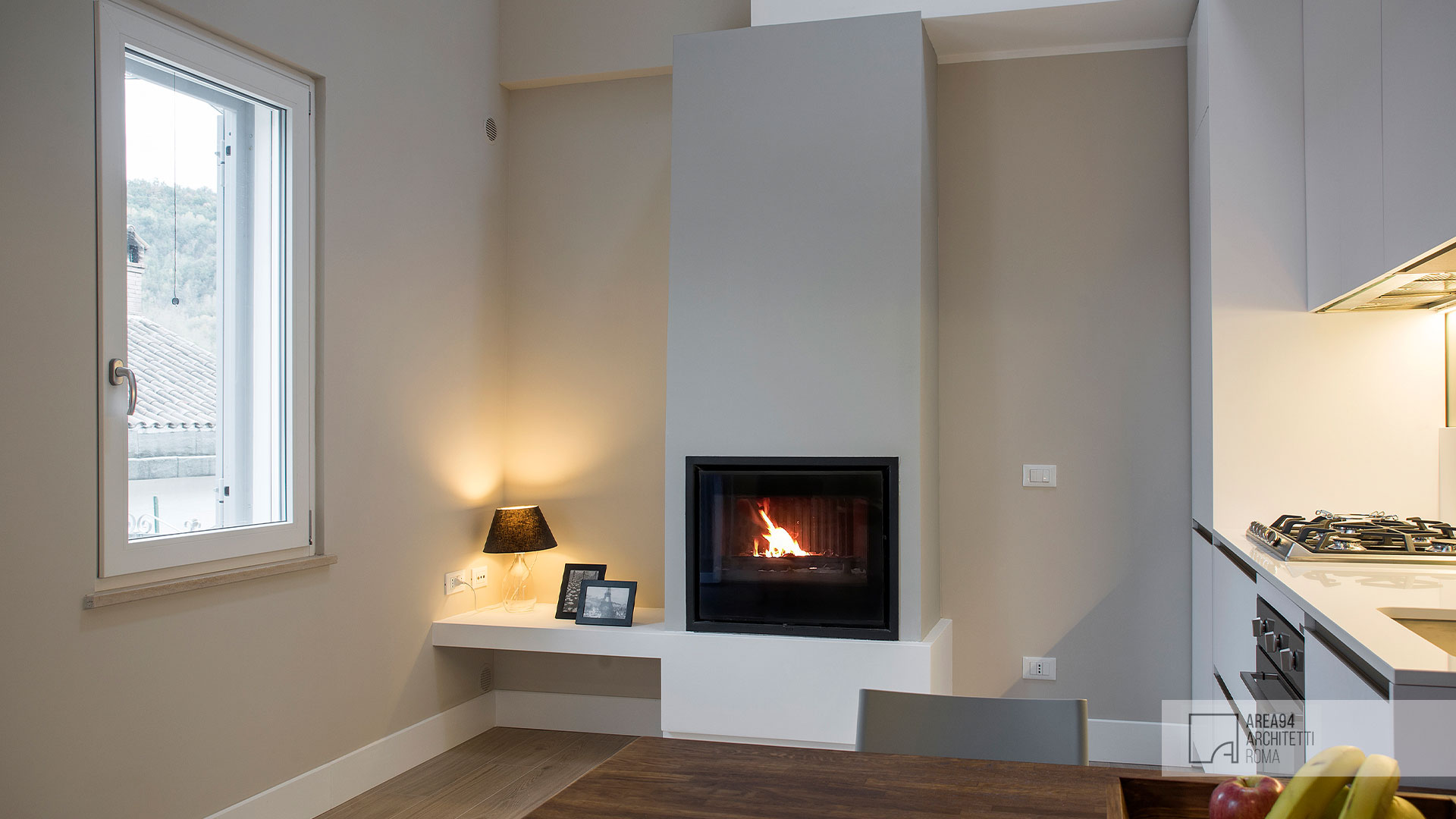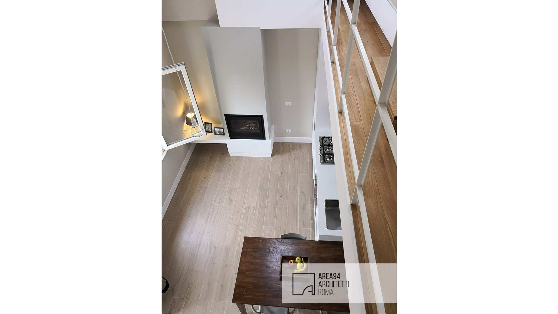 Ristrutturazione totale di una vecchia abitazione costruita in seguito al terremoto della Marsica del 1915. Mediante la demolizione parziale del solaio intermedio, abbiamo realizzato un living a doppia altezza dando più luce e respiro ai piccoli spazi a disposizione.